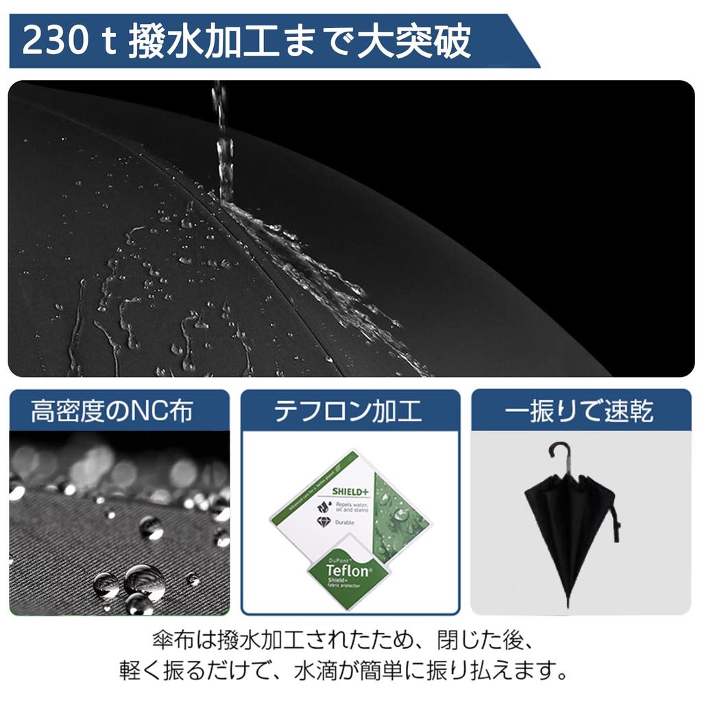 [★Длинный зонт от сильного дождя и тайфунов★]: Спица этого зонта специально разработана для того, чтобы выдерживать тайфуны и штормы. Это мужской зонт, который подарит вам душевное спокойствие даже при сильном ветре. Спица зонта изготовлена из гибкого и прочного стекловолокна и имеет двойную структуру, которая обеспечивает беспрецедентную прочность и долговечность.. Он чрезвычайно прочен, поэтому вам не придется беспокоиться о том, что он сломается или легко сломается даже во время ливня или тайфуна.. Даже если часть зонта перевернется из-за сильного ветра, она вернется к своей первоначальной форме.. Не нужно беспокоиться о том, что он легко сломается или погнется.