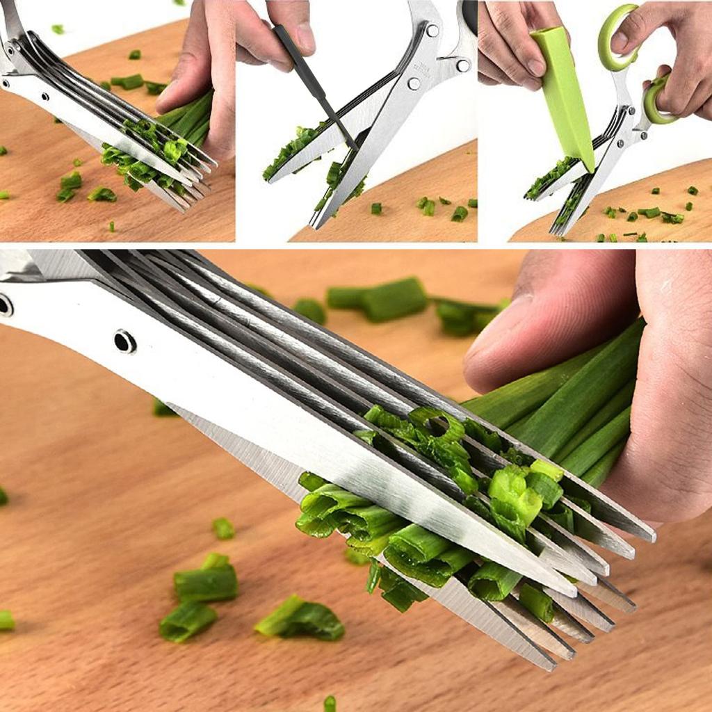Кухонные ножницы, ножницы-шинковка, нержавеющая сталь, ножницы для резки лука и водорослей, ножницы для овощей, 5 лезвий, моющиеся, набор из 2 шт. (синий)
