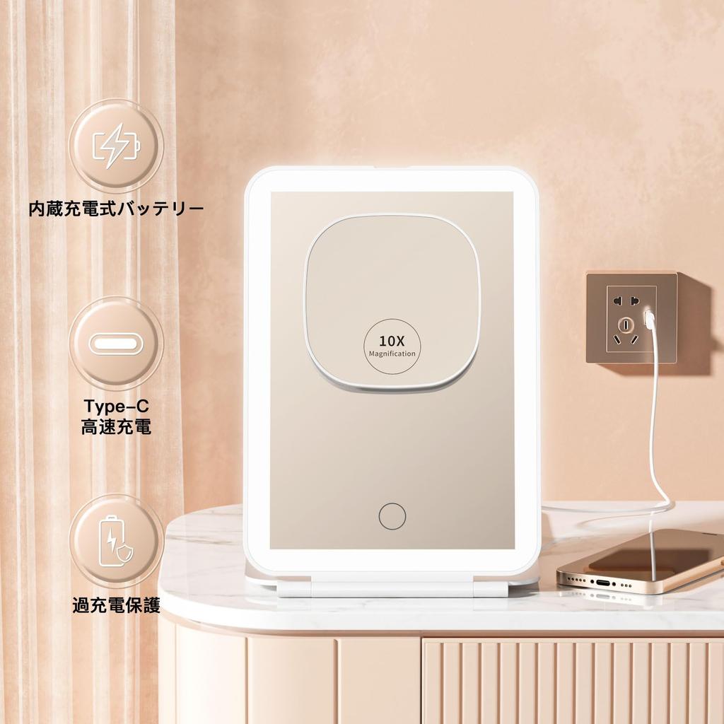 Beautifive LED Actress складной настольный макияж 10x магнитный дорожный 3 свет не даст вам забыть повернуть плавное USB регулируемое зеркало с углом наклона,