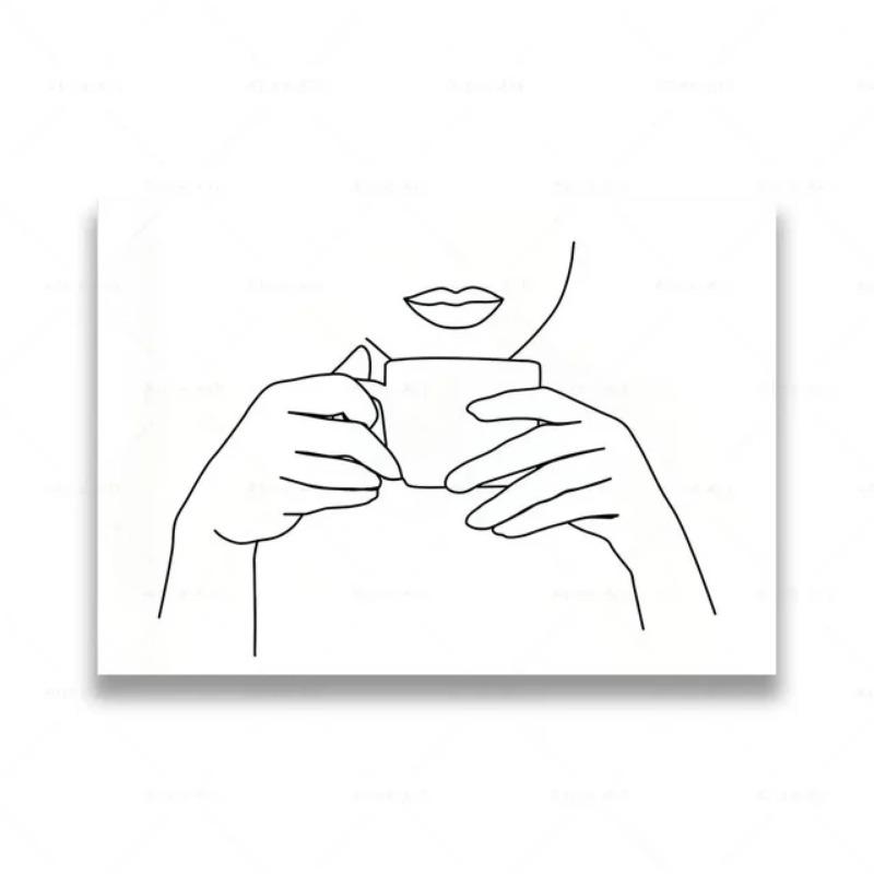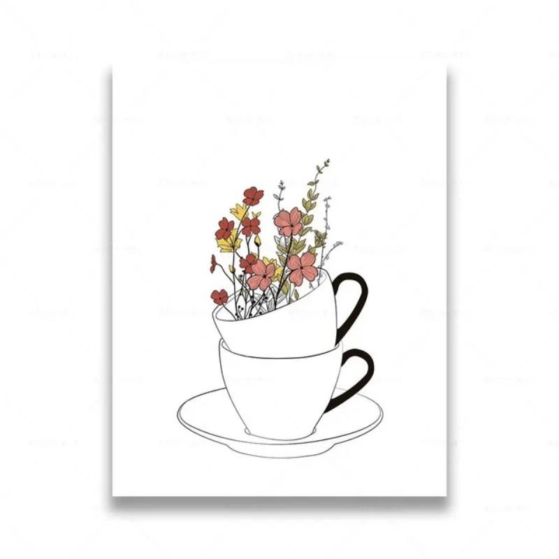 Nordic Coffee Shop Картина на холсте Минималистское линейное искусство кофейных кружек Цветы Декор для кухни Плакаты Печать Современный дом