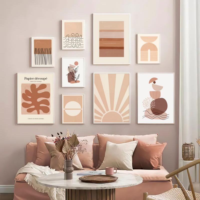 Абстракция Матисс Солнце Линии Геометрия Настенная живопись Холст Картина Бохо Бежевый Плакаты Печать Картины Декор интерьера гостиной