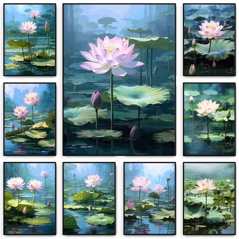 Красивый цветок лотоса, красочный современный пейзаж, цветы, растения, картина на холсте, печать, настенное искусство для гостиной, домашний декор