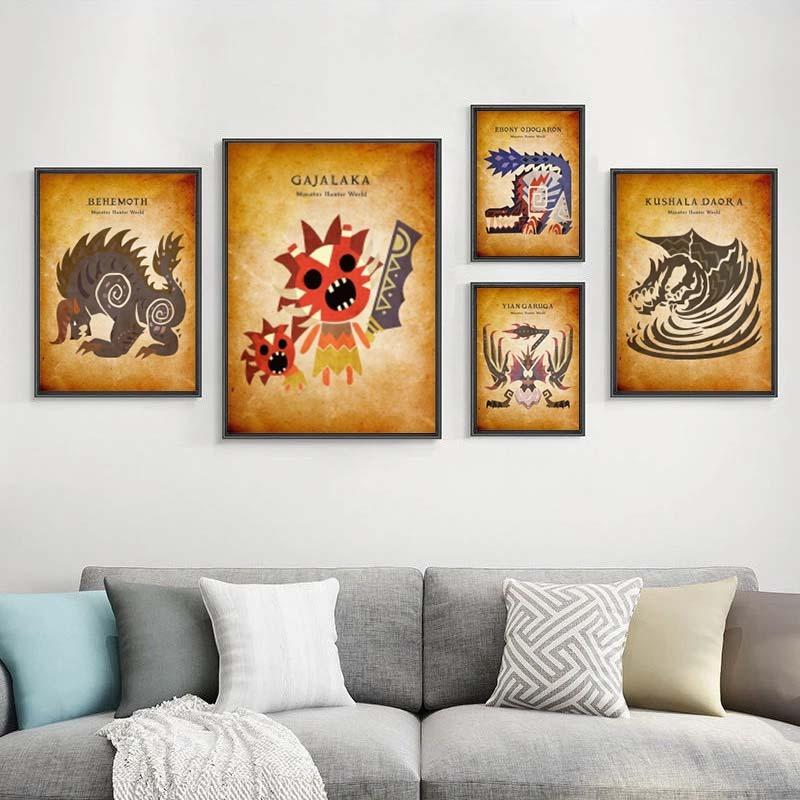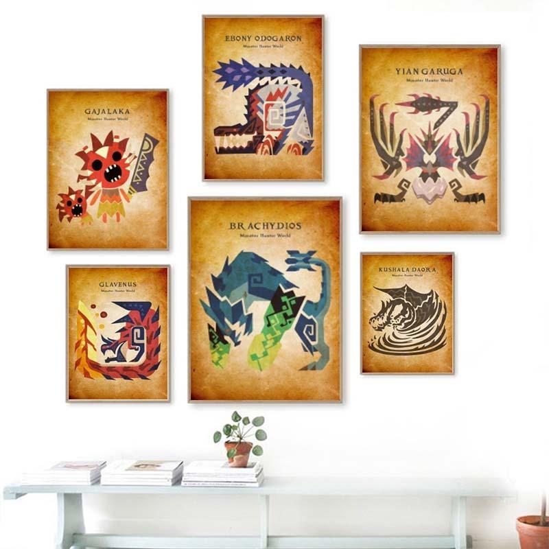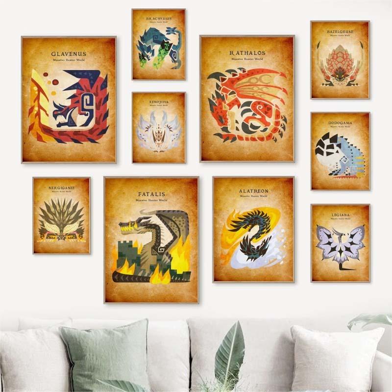 Японская игра анимированные винтажные картины на холсте настенные картины Monster Hunter художественные постеры и принты для гостиной домашний декор