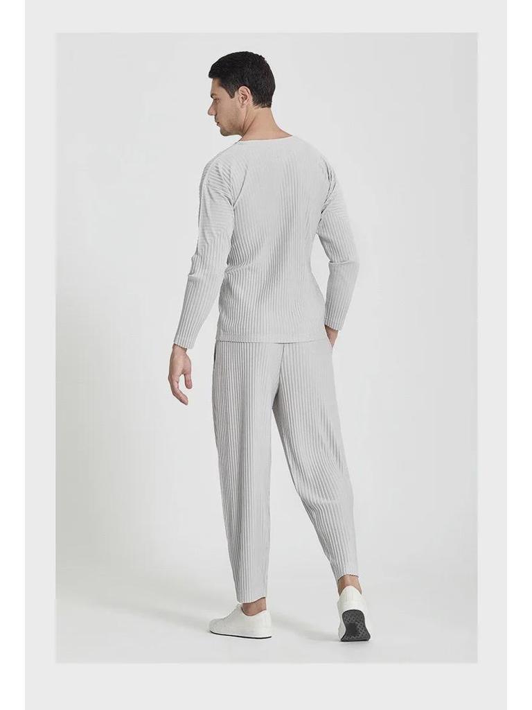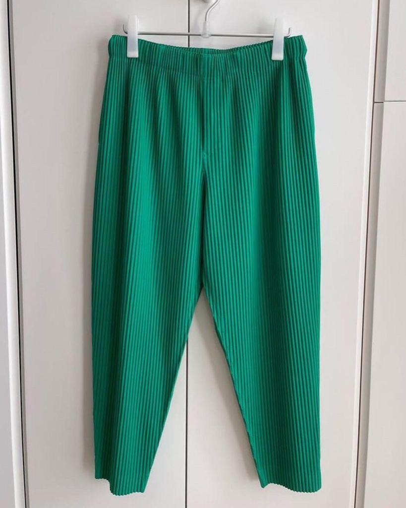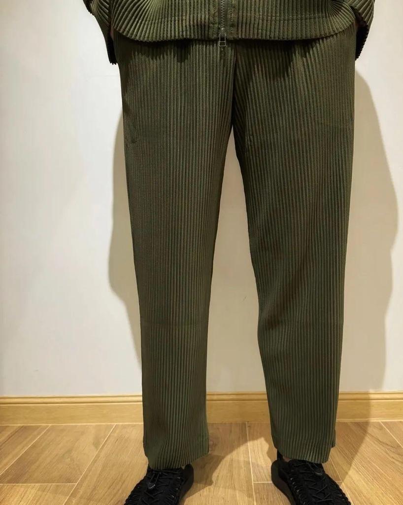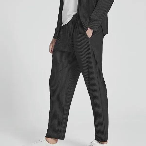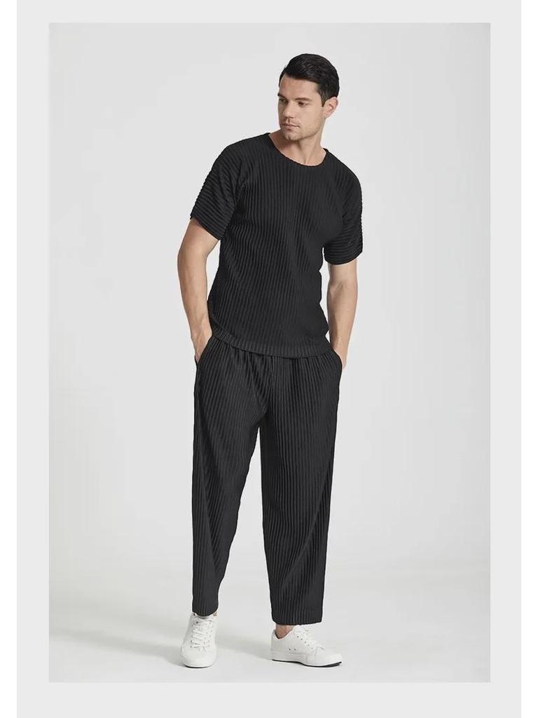 Откройте для себя комфорт и стиль этих мужских летних свободных брюк-каррот со складками Nine-Point, выполненных в характерном японском стиле.. Эти брюки имеют гибкий эластичный пояс для удобства ношения и полностью изготовлены из высококачественного полиэстера, что обеспечивает как прочность, так и легкость.. Идеально подходящие для теплой погоды, их уникальный плиссированный дизайн и длина в девять точек создают современный, непринужденный образ, подходящий для различных повседневных случаев.