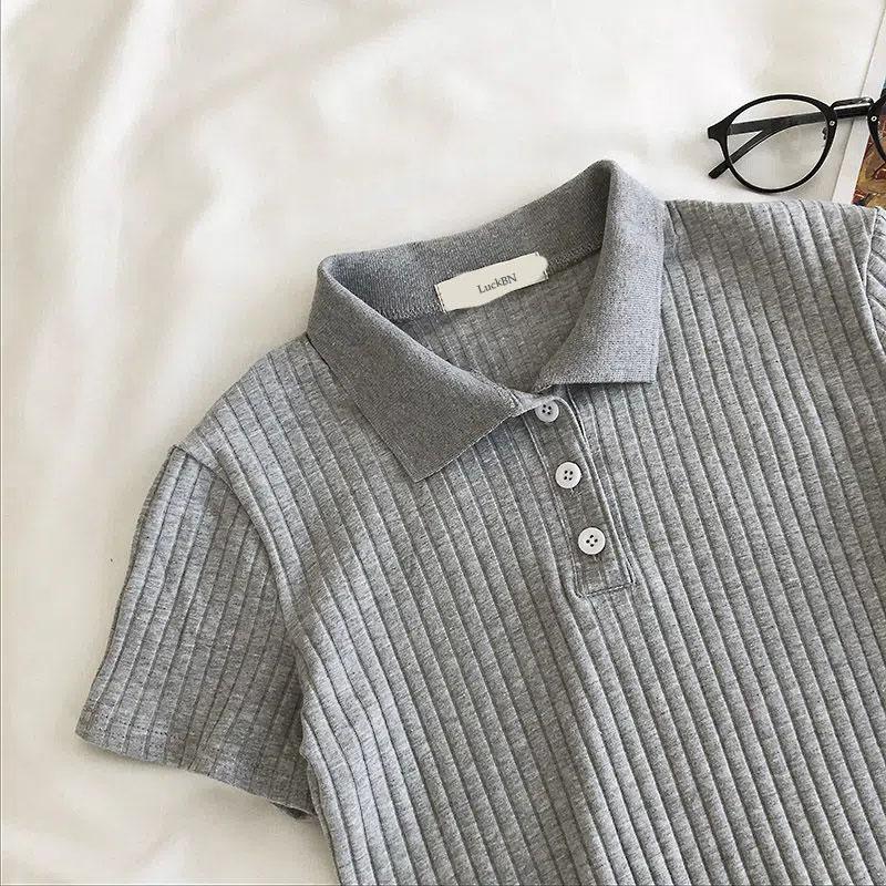 Белая, черная, серая рубашка поло, женские топы с коротким рукавом, эластичная трикотажная футболка в рубчик с 3 пуговицами, тонкие укороченные футболки