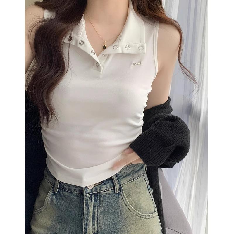 Рубашка поло с отворотом, женская, весна-лето, новинка Pure Lust Hot Girl, плиссированный жилет без рукавов, обтягивающий внутренний топ