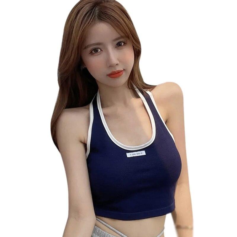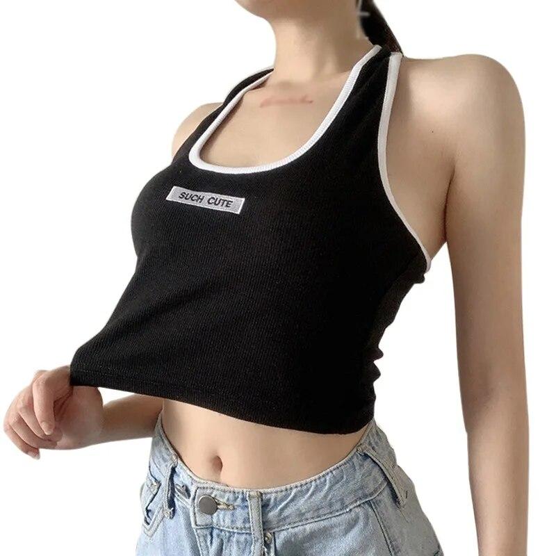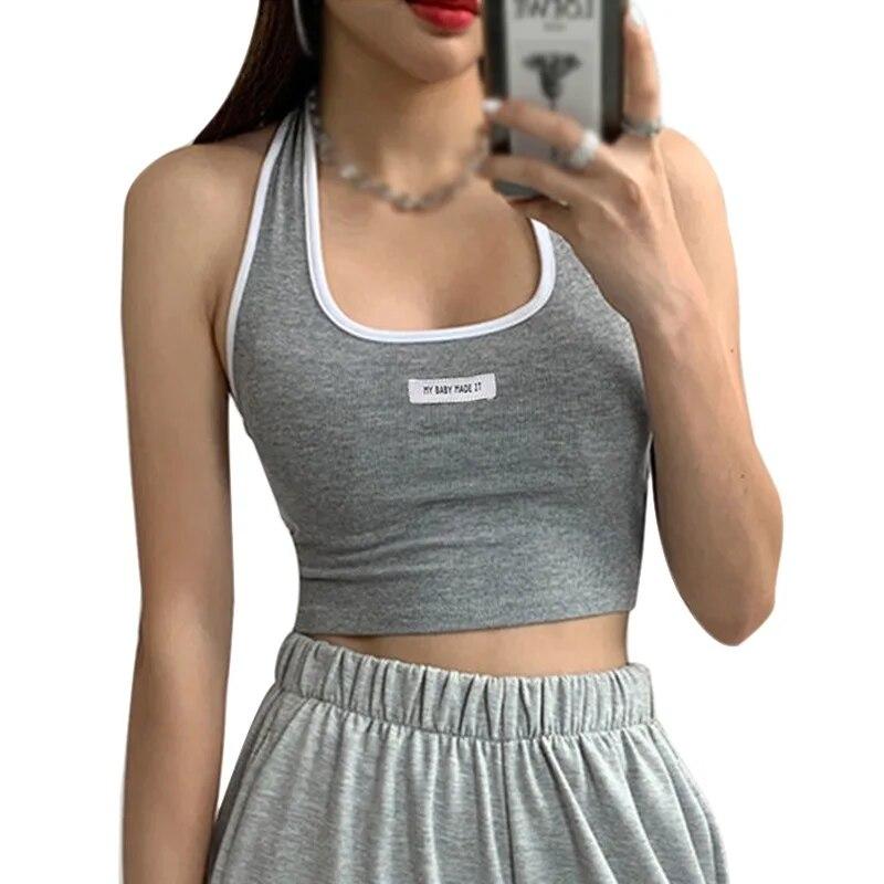 Женская майка с буквенным бретелем, тонкая вязаная майка с открытым пупком
