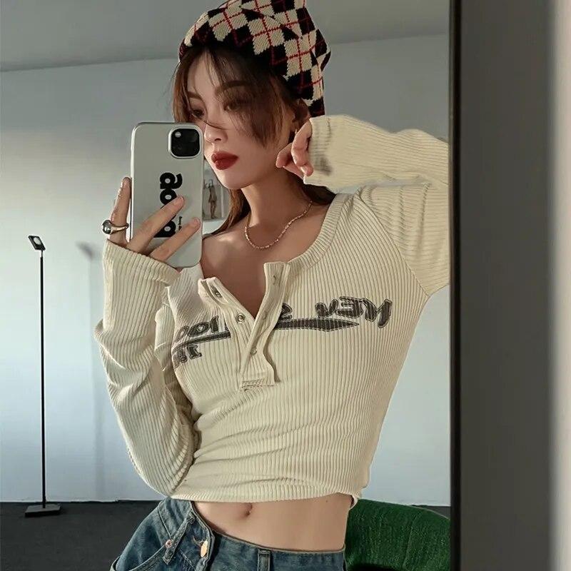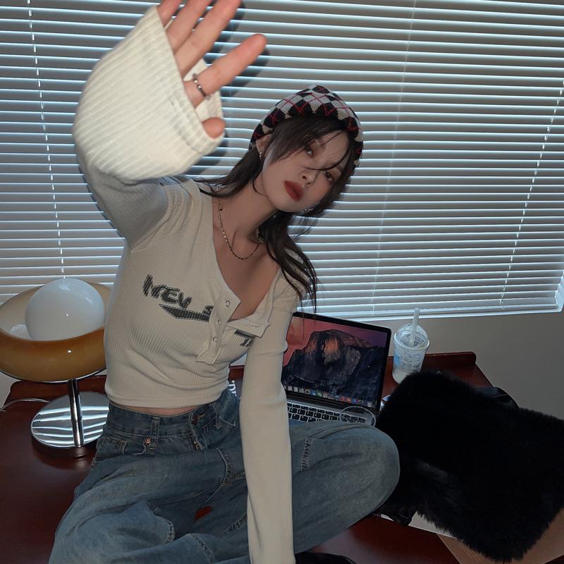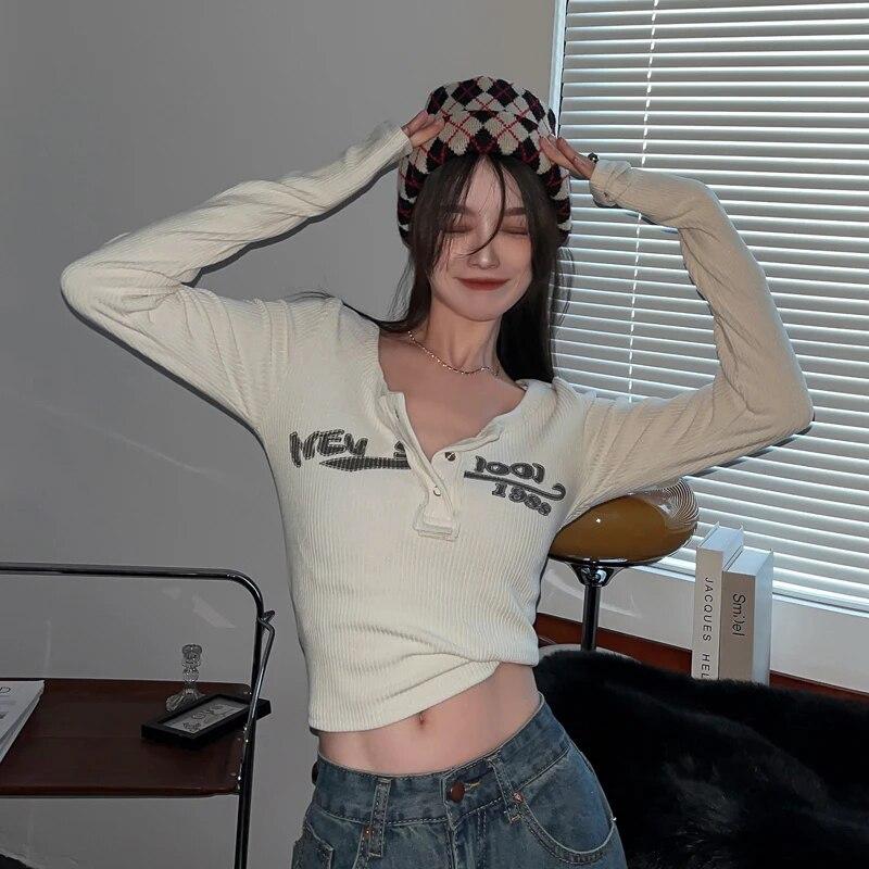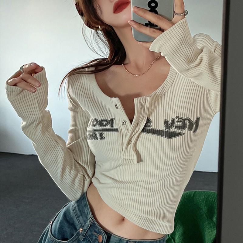 Y2k футболка с длинными рукавами, трикотажная нижняя рубашка, женская осенне-зимняя новинка, облегающие короткие внутренние топы с длинными рукавами