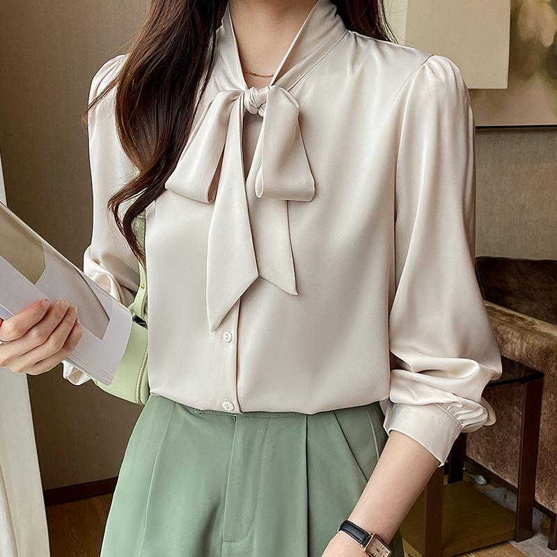 Весна 2025 г. Женская белая шифоновая рубашка с длинным рукавом и лентой в корейском стиле