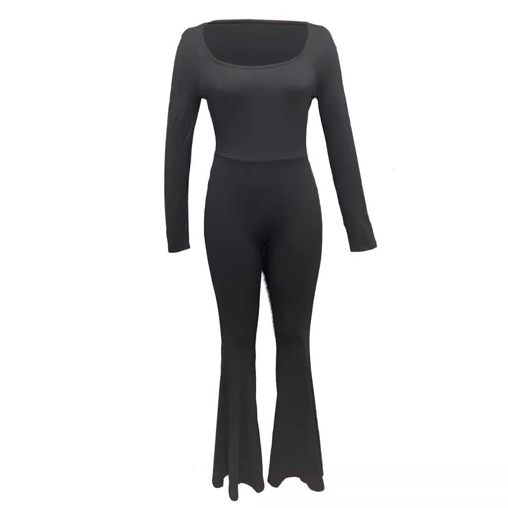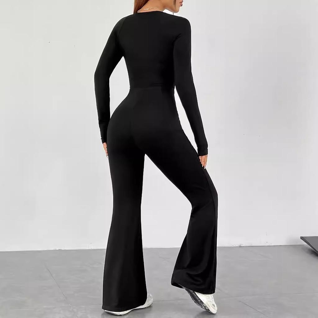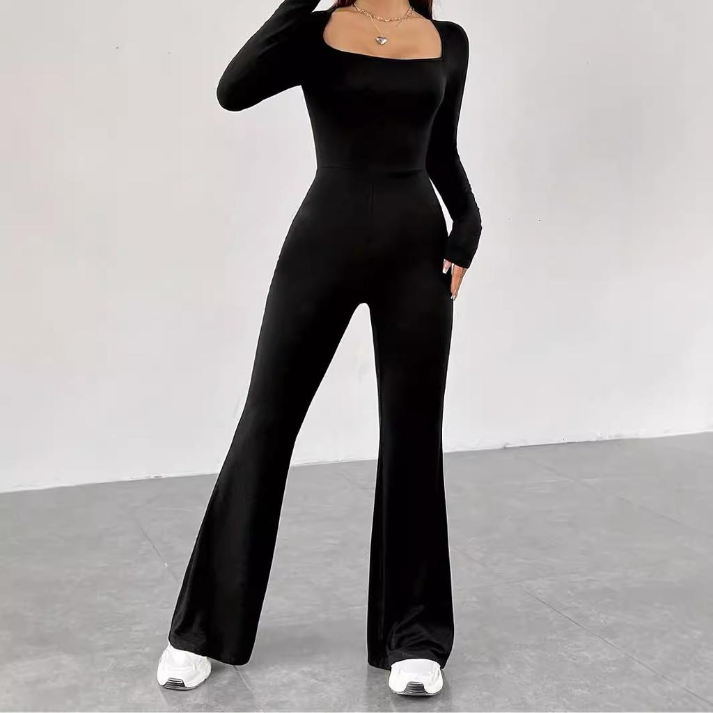 Женский однотонный облегающий комбинезон с длинными рукавами и квадратным вырезом