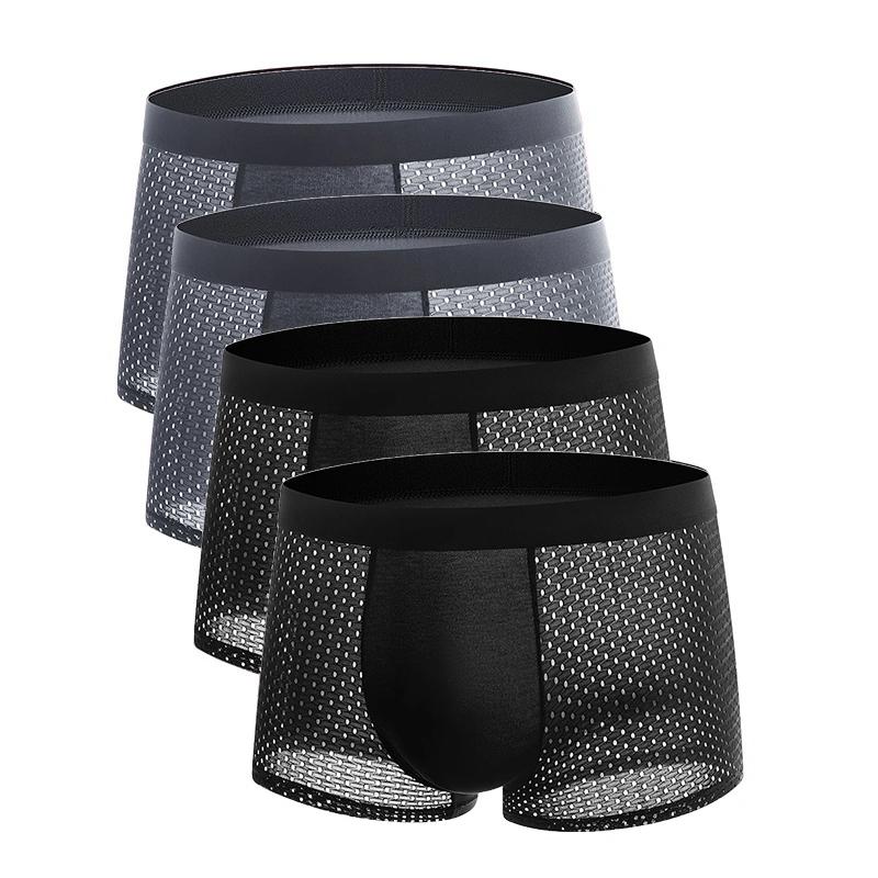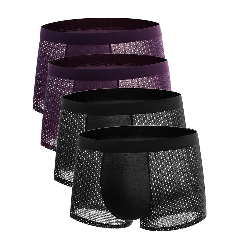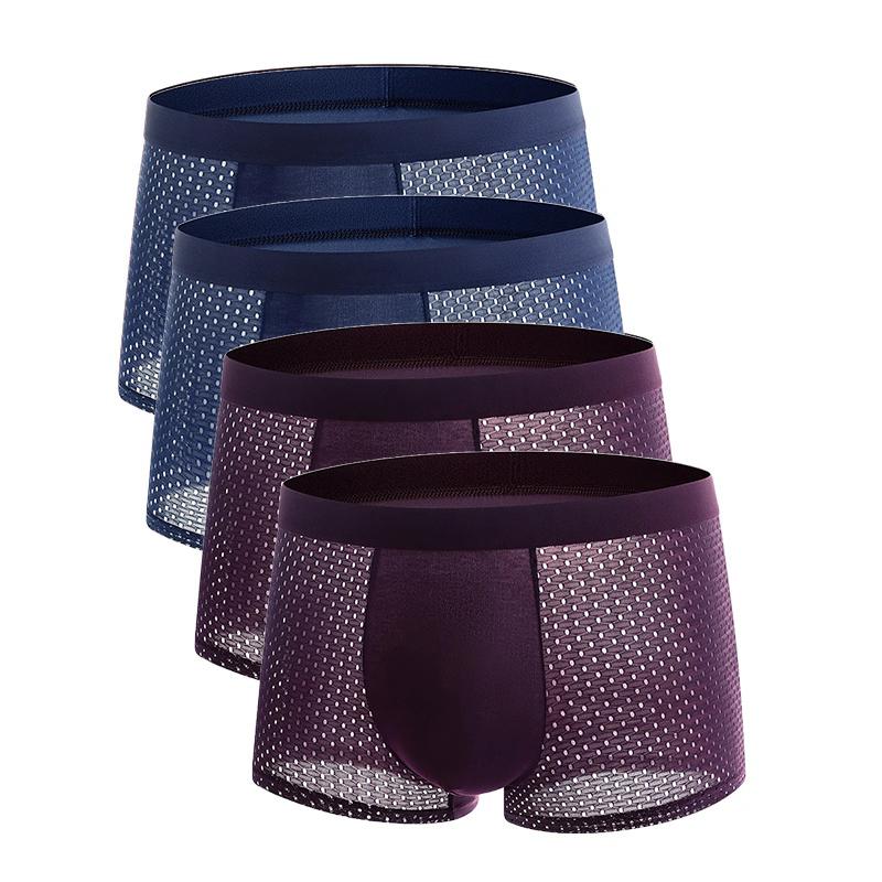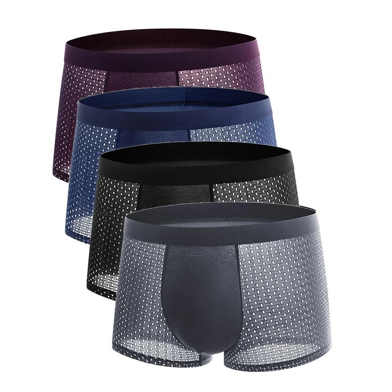 4 шт. трусы больших размеров, мужское сетчатое нижнее белье, мужские боксеры из бамбукового волокна, мужские боксеры, дышащие однотонные трусы