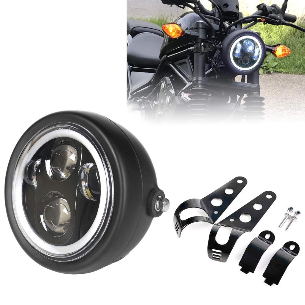 Дюймовая светодиодная фара для мотоцикла с белым кольцом Halo с кронштейном для крепления корпуса фары, совместимая с Honda Shadow 750 Rebel 500 Cafe Racer Bobber