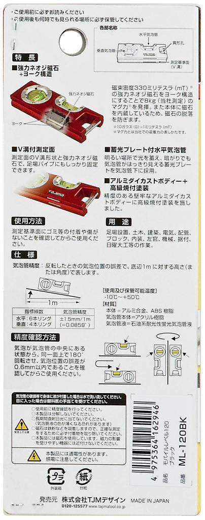 Мобильный уровень Tajima 120 мм черный ML-120BK
