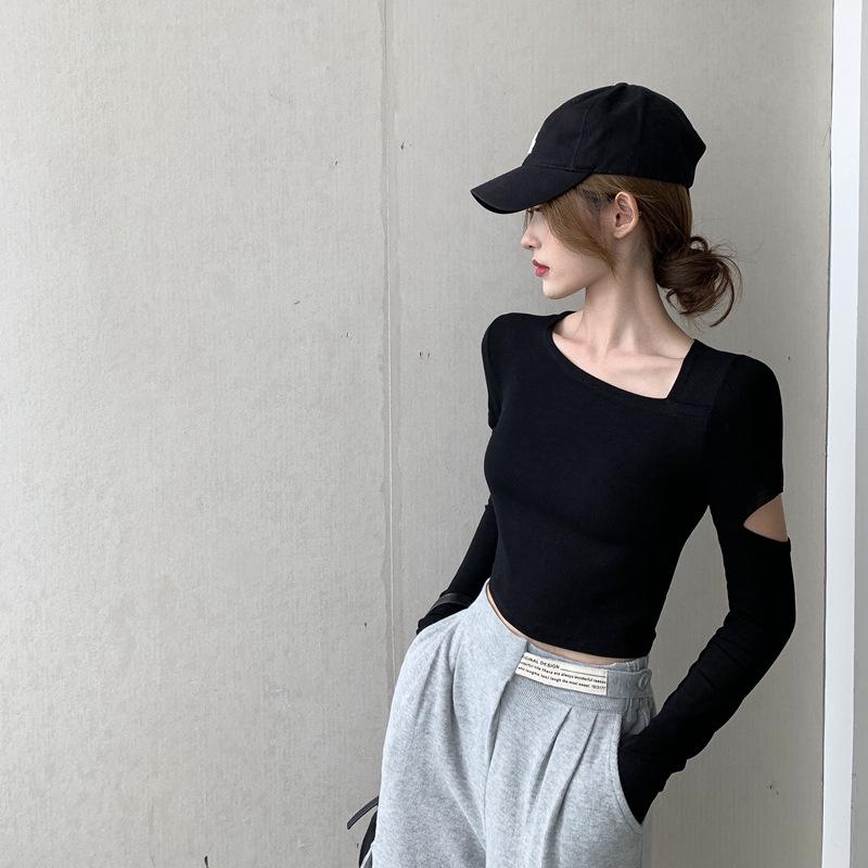 Женский облегающий повседневный топ с длинными рукавами — однотонный и универсальный, с круглым вырезом и ажурной отделкой — купить товар онлайн с бесплатной доставкой по всему миру!