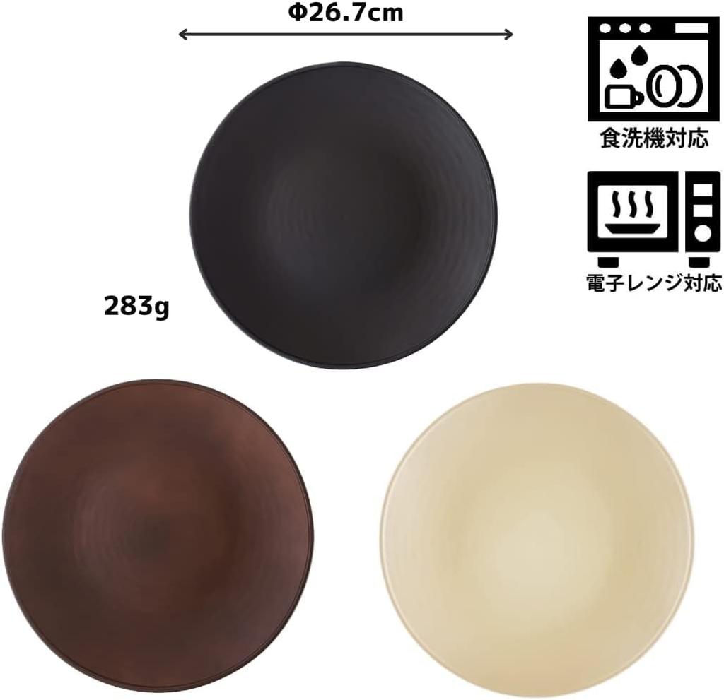 Набор плоских тарелок rebirth Natural Series из 4 штук, сделано в Японии, черный пластик, легко мыть в посудомоечной машине, микроволновая печь, 26,7 см (черный)