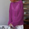 Ажурная трикотажная рубашка весна/лето женская перспектива тонкая большая круглая горловина рукав труба трикотажная футболка