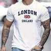 Летняя мужская футболка свободного кроя из 100% чистого хлопка большого размера с принтом в стиле Лондон-Англия с круглым вырезом и короткими рукавами