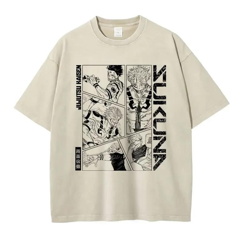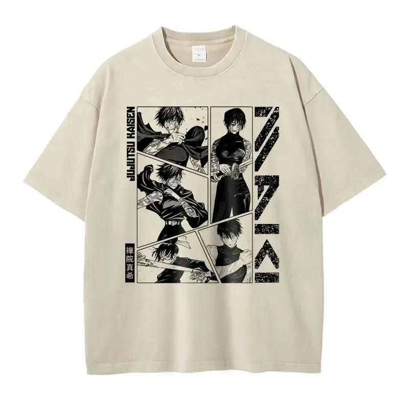 Аниме J-Jujutsu K-Kaisen Футболки Винтажная стирка CHOSO Футболка Оверсайз Уличная одежда Фушигуро Тодзи Годжо Топы с коротким рукавом Футболки