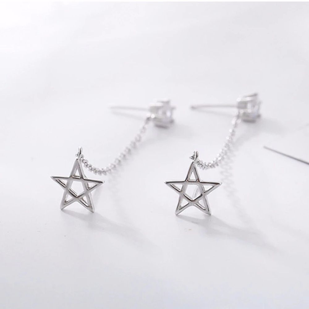 Двойные отверстия для ушей Медные звезды Серьги-гвоздики Серьги-цепочки Женские серьги-гвоздики Серьги в корейском стиле