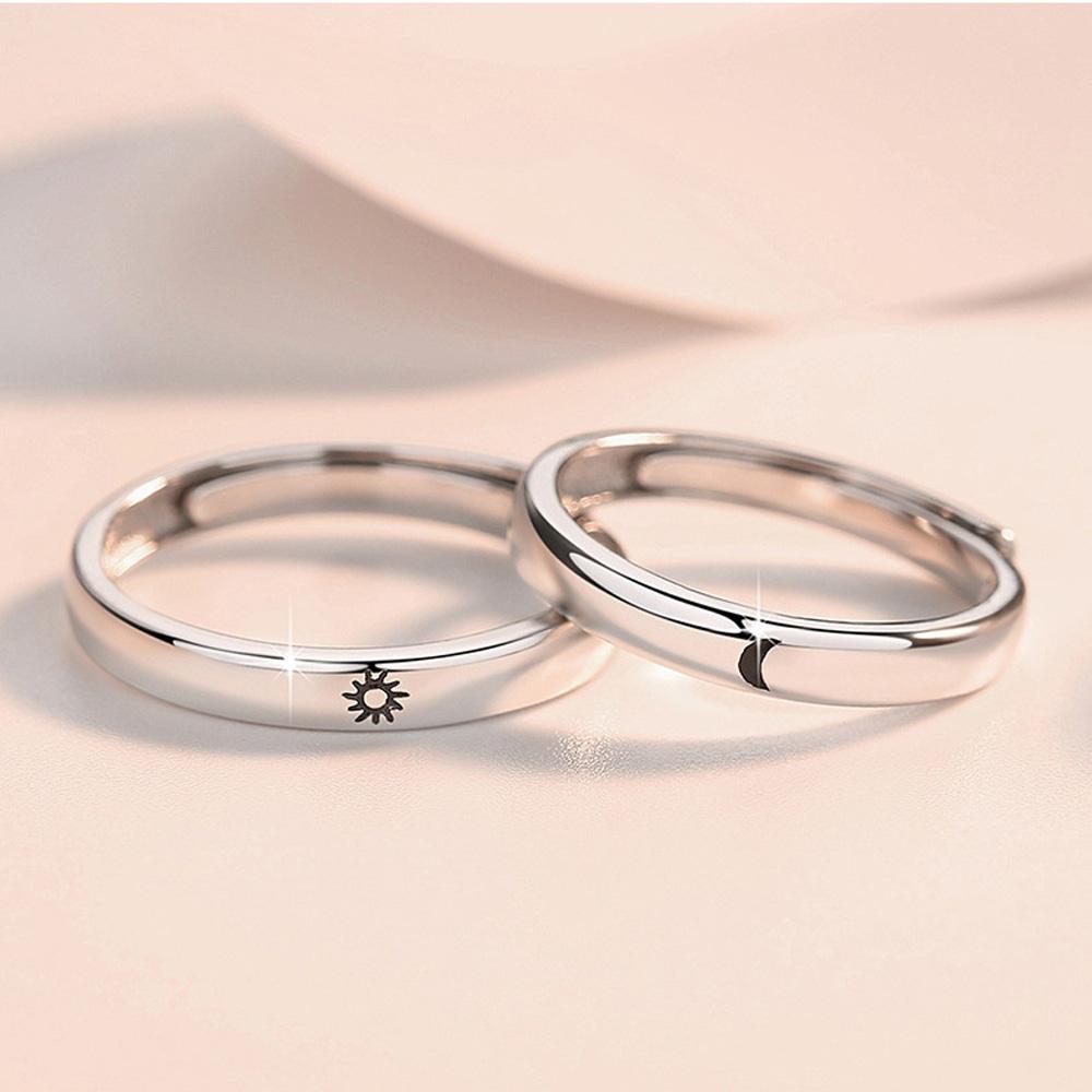 Adjustable Wedding Party Women Men Finger Rings Set Engagement Ring Sun Moon Ring Couple Jewelry