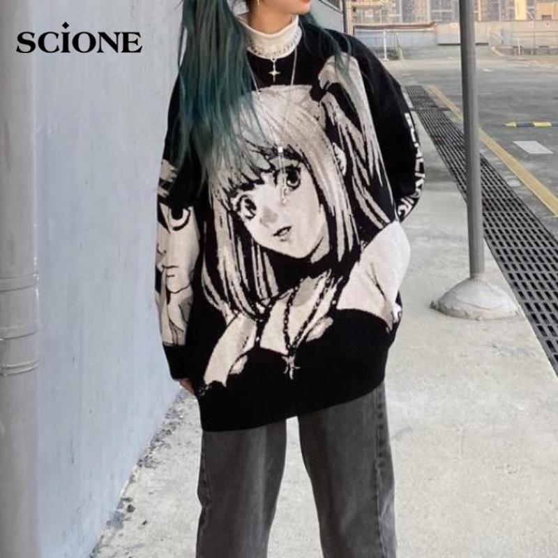 Готические топы Y2k с мультяшным принтом, свободный свитер с круглым вырезом, пуловер в стиле Харадзюку, женская одежда в стиле аниме 2D