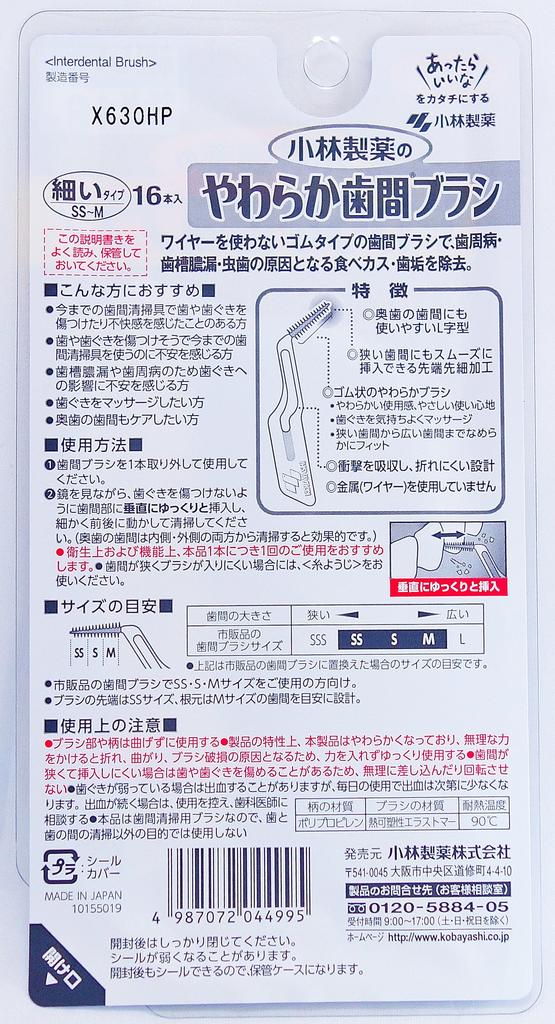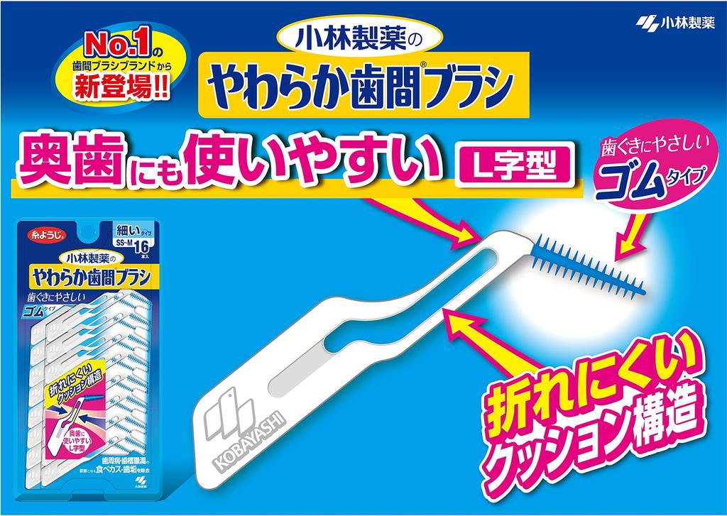 Kobayashi мягкая межзубная щетка удобная в использовании сзади 16 резиновых типа L-образная от фармацевтической компании, размер SS-M, зубы, штук,