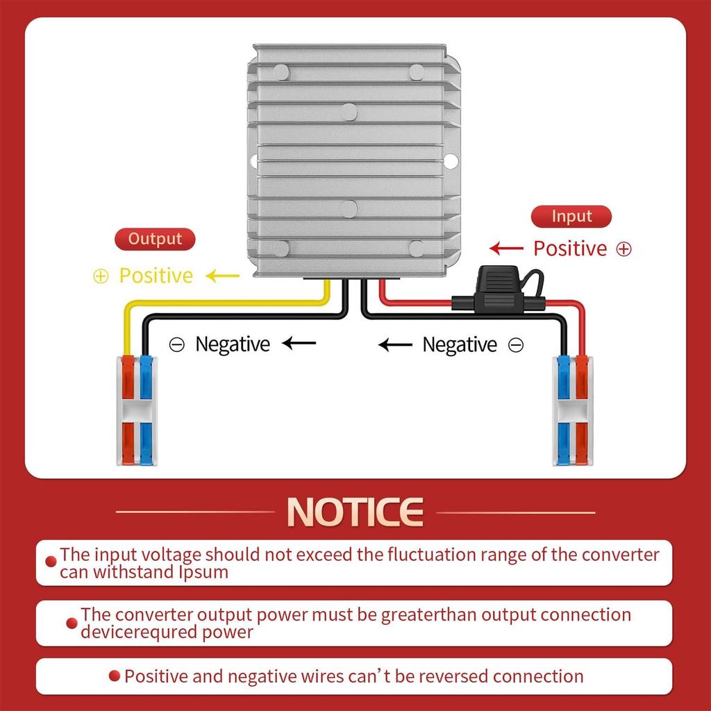 【Быстроразъемный кабельный разъем и простая установка】Преобразователь напряжения 12 В в 24 В оснащен быстроразъемным кабельным разъемом для быстрого подключения.. Вы можете сэкономить массу усилий, не прибегая к использованию проводов.. уведомление: Полоса 0,4 (около 10 мм) провода и вставьте его в разъем.