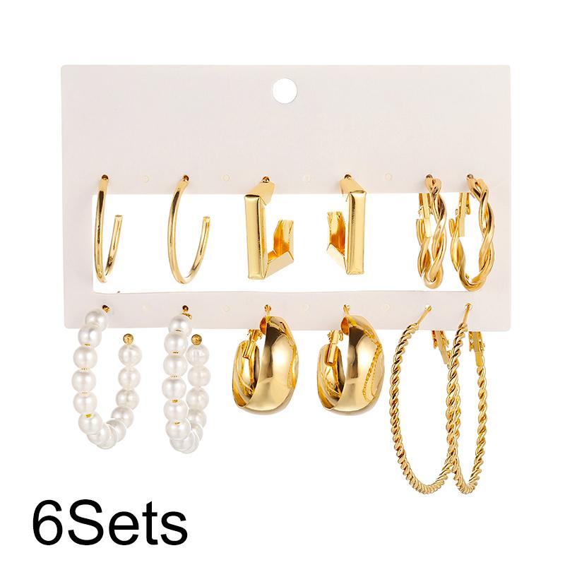 6 шт./компл. металлические серьги модный сплав золотого цвета геометрические геометрические искусственные жемчужины модные женские серьги в форме буквы С