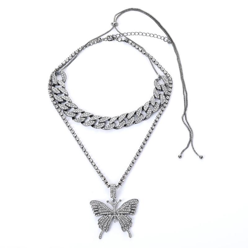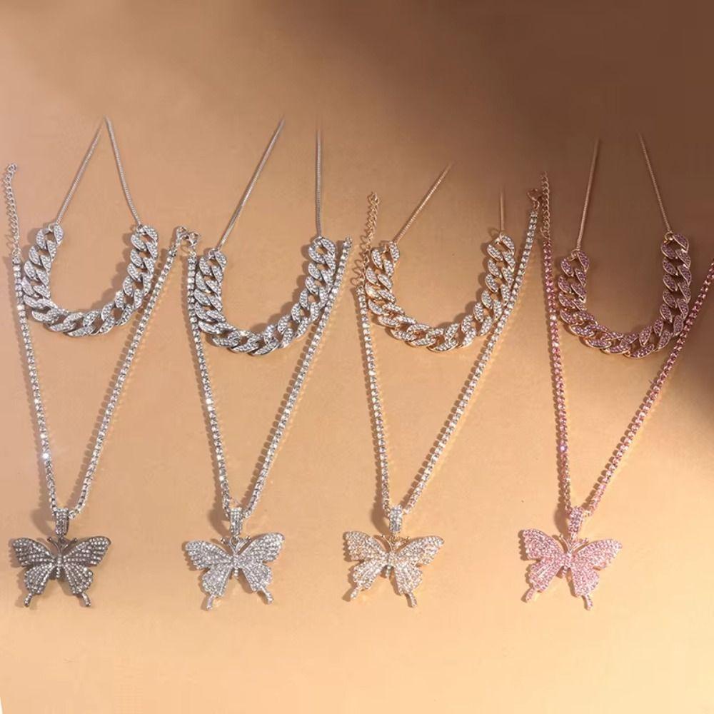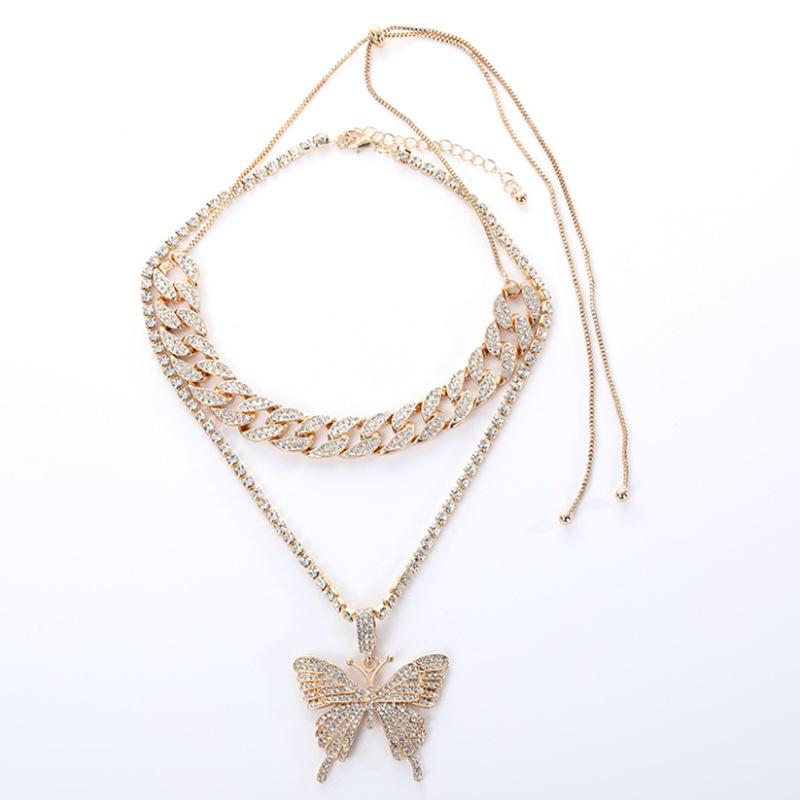 Big Butterfly Bling Necklace Rhinestone Fashion Collars Necklace Necklace for Women