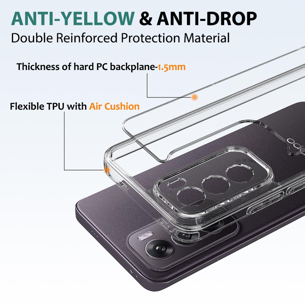 Для Oppo Reno12 5G (Глобальный) Прозрачный чехол для телефона ТПУ+Акрил Противоударная задняя крышка для телефона