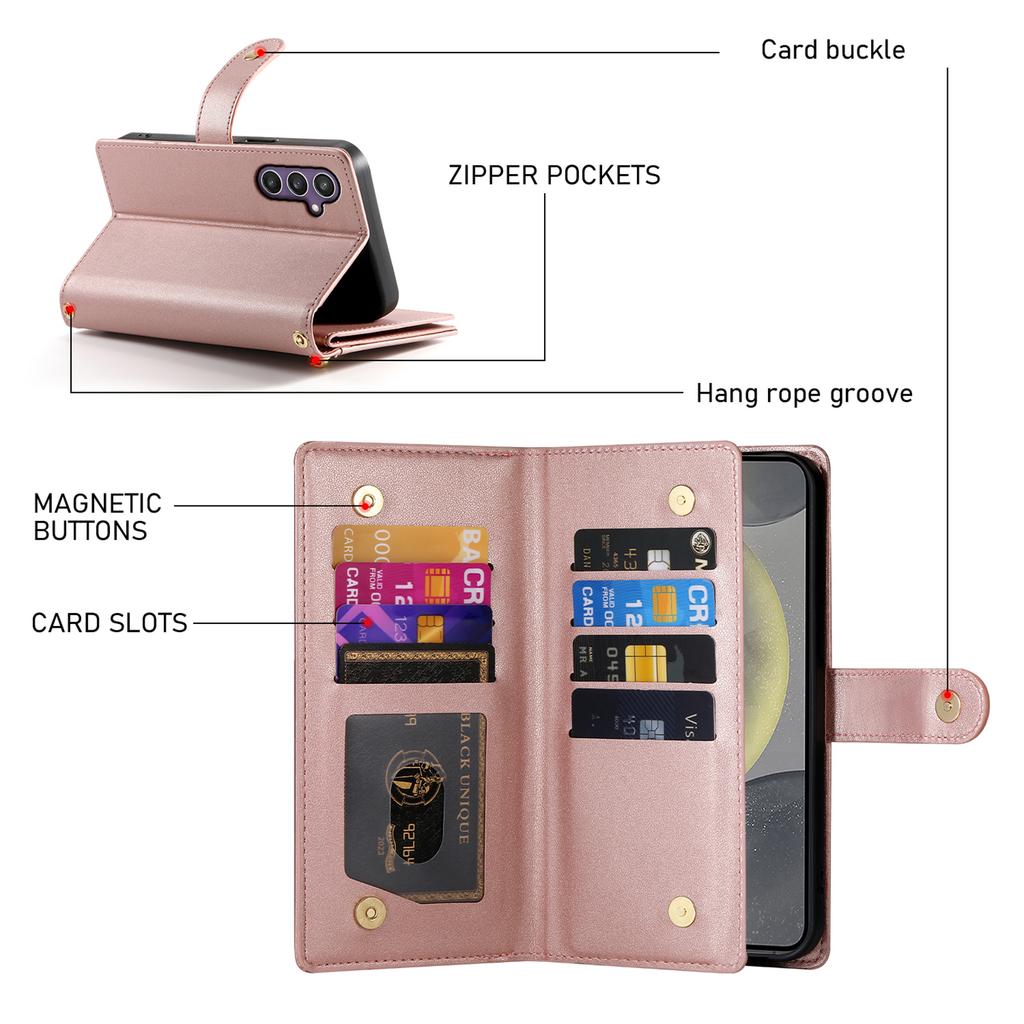 Чехол для Samsung Galaxy S25+ Кошелек с карманом на молнии Кожаный чехол для телефона с ремешками