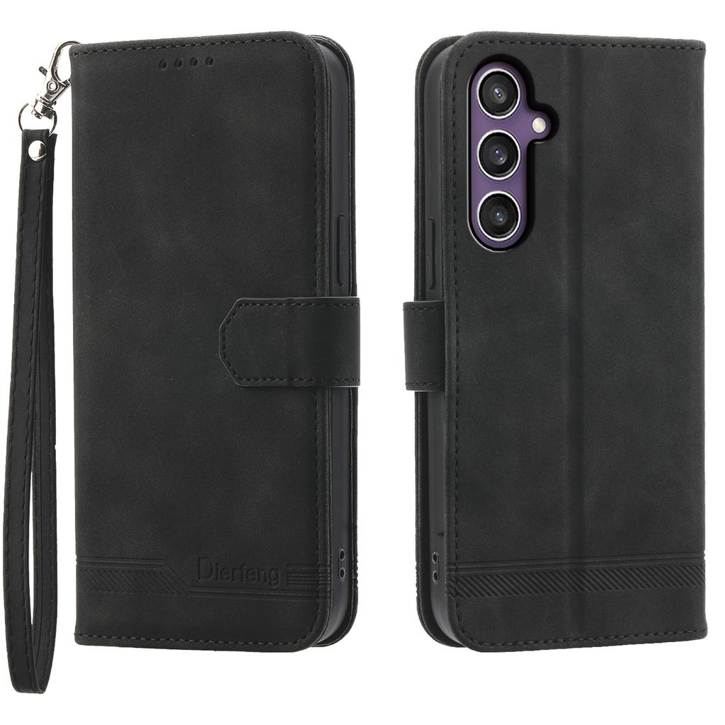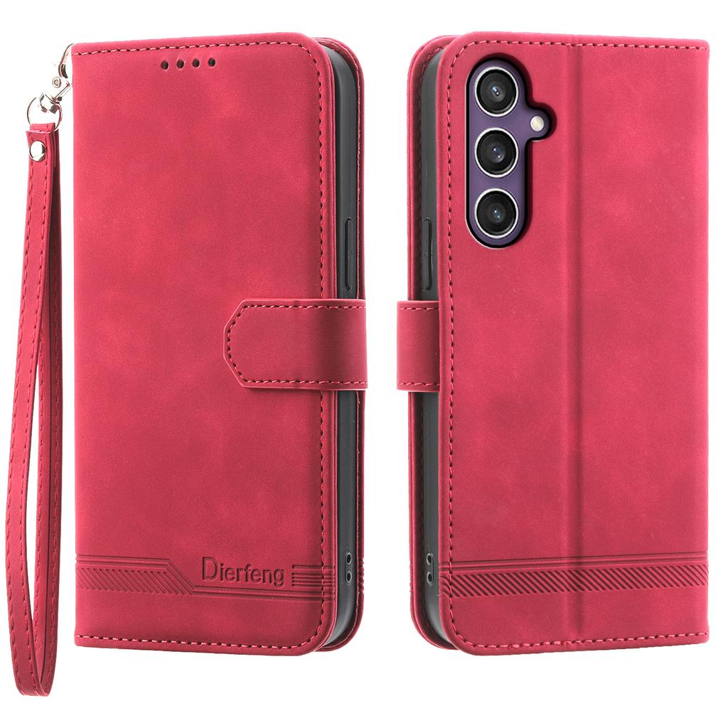 For Samsung Galaxy S25+ Leather Case Lines Imprint Wallet Phone Cover
