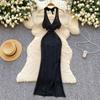 Женское платье-халтер в стиле отпуска, летнее платье с глубоким V-образным вырезом и открытой спиной на бретелях