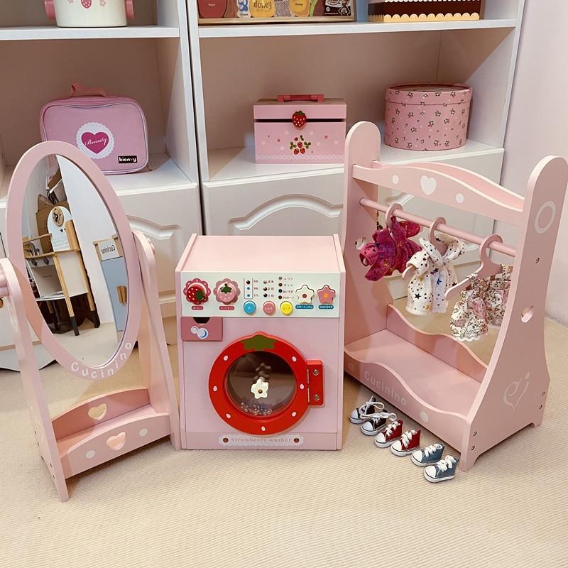 Деревянная Имитация Розовая Вешалка для Одежды Косметика Напольное Зеркало Стиральная Машина Мебель Игрушки для Игрового Домика