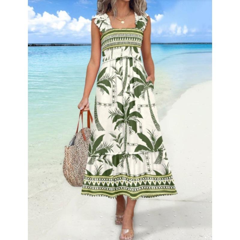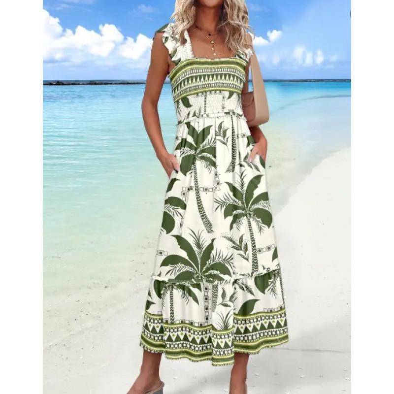 Новое летнее платье с принтом на шее и длинное пляжное платье