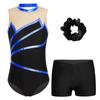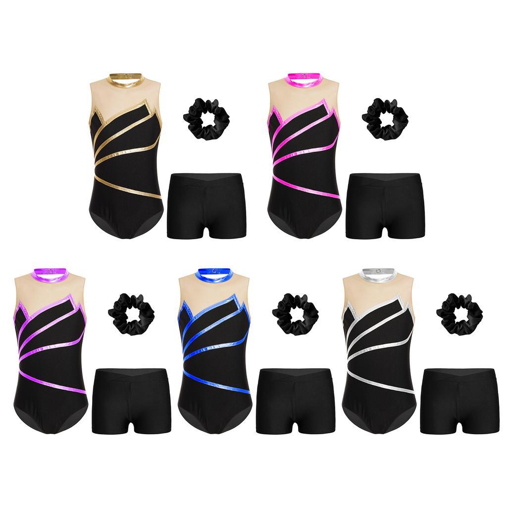 Спортивный комплект для девочек, лоскутное трико с вырезом-замочной скважиной на спине, шорты, повязка на голову, спортивный костюм для тренировок