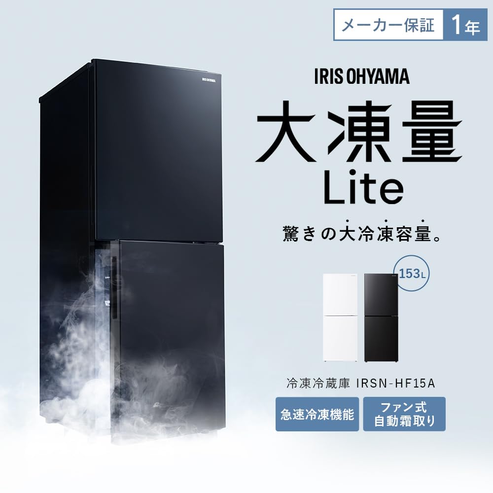 Холодильник Iris Ohyama 153 л Белый Большая морозильная камера Ширина 50 см 2 двери Открывание справа Автоматическая разморозка Морозильная камера большой вместимости Новая жизнь