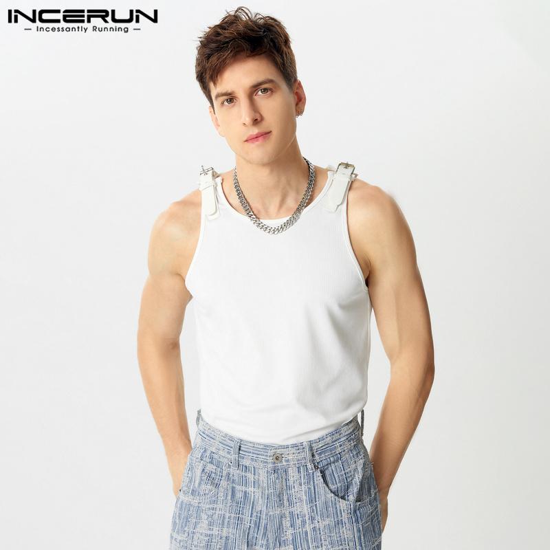 INCERUN Летние мужские повседневные облегающие топы без рукавов с наплечниками