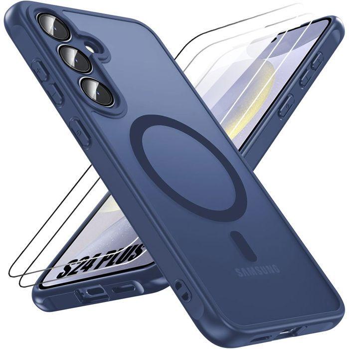Coque de protection - BOOLING - pour Samsung Galaxy S24 Plus - Bleu Marine - Antichoc - 2 Verres Trempés
