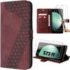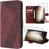 Coque de protection - BOOLING - pour Samsung Galaxy S25 Plus - Cuir PU - Rouge - 2 Verres Trempés