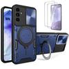 Case for Samsung Galaxy A23 5G - Navy Blue - Metal Stand - Camera Protection - 2 Tempered Glasses — купить товар онлайн с бесплатной доставкой по всему миру!