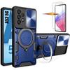 Coque pour Samsung Galaxy A23 5G - Bleu Marine - Support Métal - Protection Caméra - 2 Verres Trempés