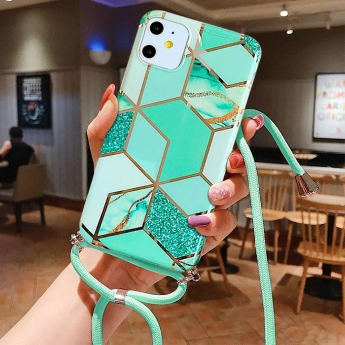Coque avec Collier - pour iPhone 11 - Turquoise - AntiChoc - AntiRayure - Motif Marbre