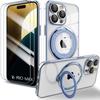 Coque pour iPhone 15 Pro Max, Antichoc Rigide avec Support Anneau Magnétique Réglable et Protection Caméra - Translucide Bleu