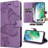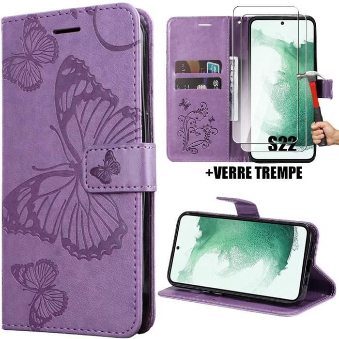 Coque de protection - BOOLING - pour Samsung Galaxy S22 - Motif Papillon - Effet Cuir Violet - Support Téléphone