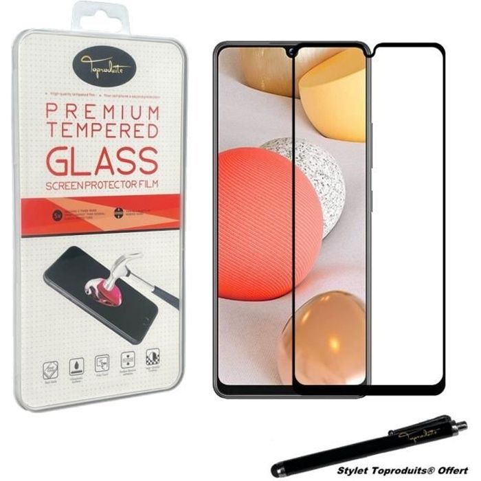 Film de protection - Toproduits® - Samsung Galaxy A12 - Verre trempé - Bords noirs - Stylet inclus