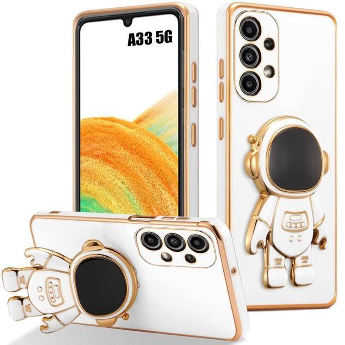 Coque Silicone - Booling - pour Samsung Galaxy A33 5G - Antichoc - Support Astronaute - Blanc