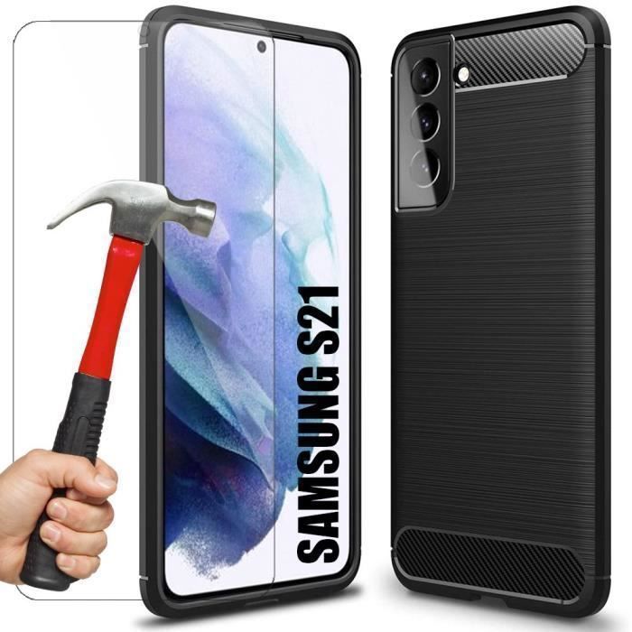Coque - BOOLING - pour Samsung Galaxy S21 - Noir - Anti-Rayure - Anti-Choc - Noir - 2 Verres Trempés