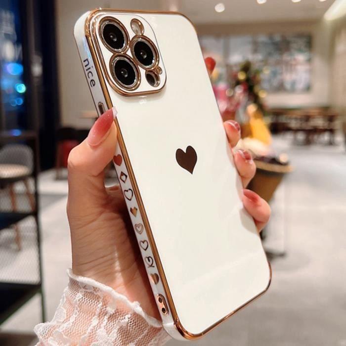 Coque de Protection - Luxe - pour iPhone 13 Pro Max - Blanc - Motif Coeur - Antichoc TPU