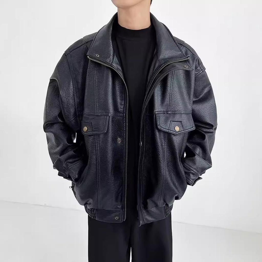 Винтажная мотоциклетная кожаная куртка для мужчин в американском стиле из искусственной кожи PU, утолщенная, укороченная, весна-осень, модная, высокого класса — купить товар онлайн с бесплатной доставкой по всему миру!